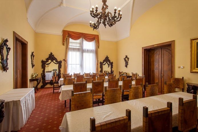 The most luxurious of all salons is the Red Salon. Hand-woven Persian carpets, historical lamps and the entire decoration create a real castle atmosphere, which is requested for wedding ceremonies, extraordinary negotiations, concerts or celebrations.