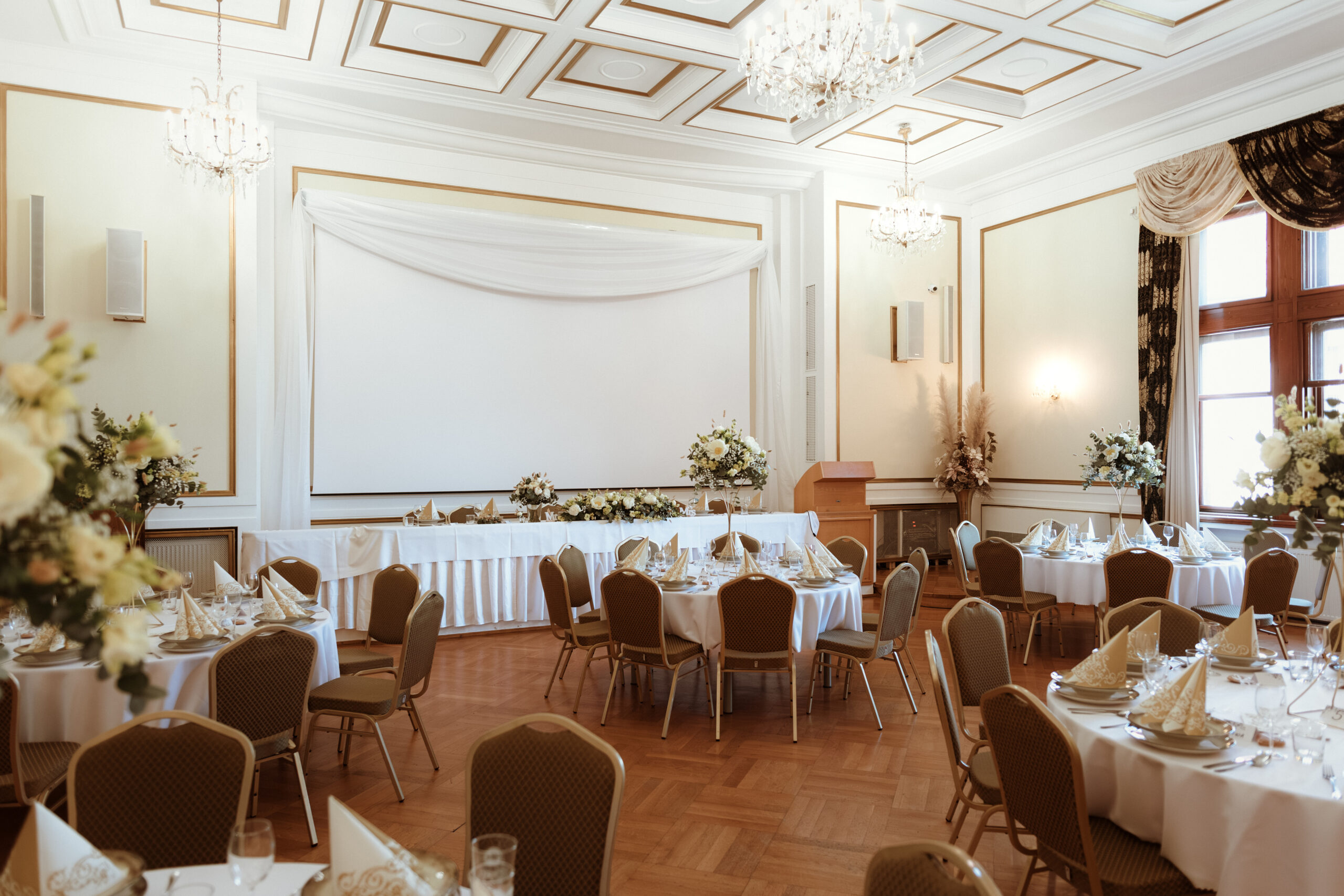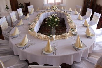 A very suitable rental premise for larger wedding receptions is the so-called Wedding set, which includes Congress Hall, Castle Dining Room and Bar. The wedding celebration and the wedding reception take place in these premieses and the seating capacity is up to 85 people.